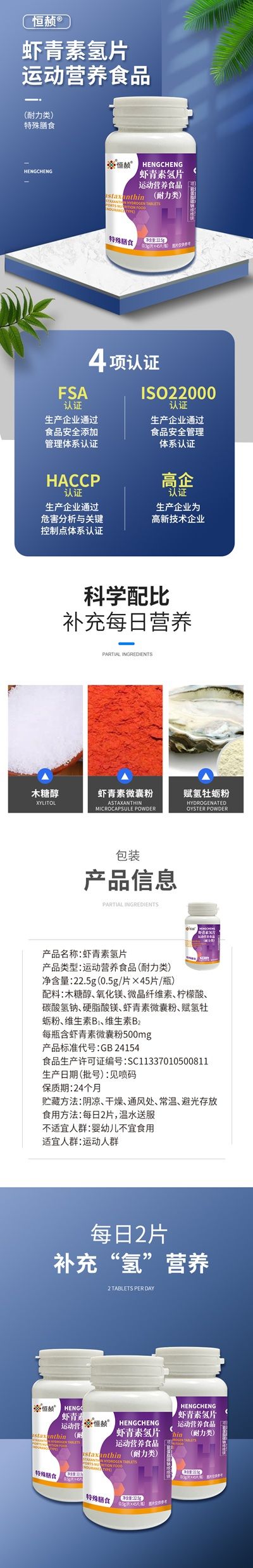 虾青素氢片0.5g*45粒/瓶