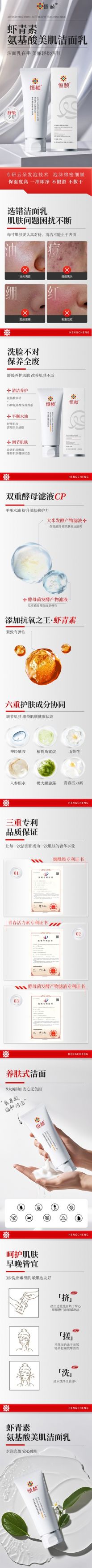 产品特点:恒赪虾青素氨基酸美肌洁面乳具有以下功效:
