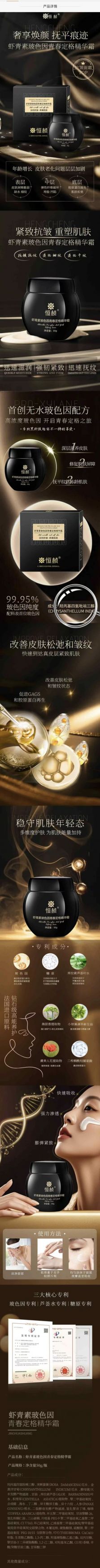 产品特点:虾青素玻色因青春定格精华霜通常具有以下功效: 抗氧化 虾青素是自然界中最强的抗氧化剂之一,能有效清除自由基,减少氧化损伤,延缓皮肤衰老。玻色因也能中和自由基,增强皮肤抗氧化能力,两者协同作用,帮助抵御环境因素对皮肤的伤害。 抗糖化 虾青素和玻色因可抑制糖化反应,减少胶原蛋白和弹性蛋白的交联,预防皮肤松弛、皱纹等糖化相关问题,维持皮肤的弹性和紧致度。 保湿修护 玻色因促进透明质酸合成,增强皮肤保湿能力;虾青素可修复皮肤屏障,提升肌肤的锁水和自我修复功能,使皮肤水润光滑。 提亮肤色 虾青素抑制