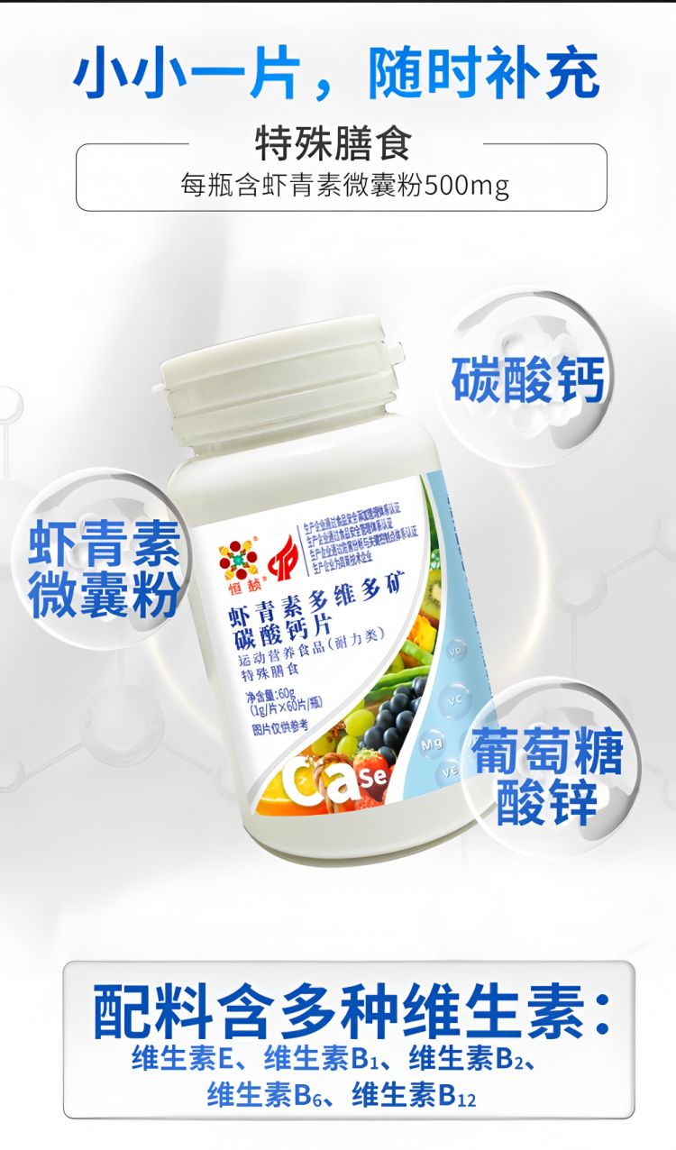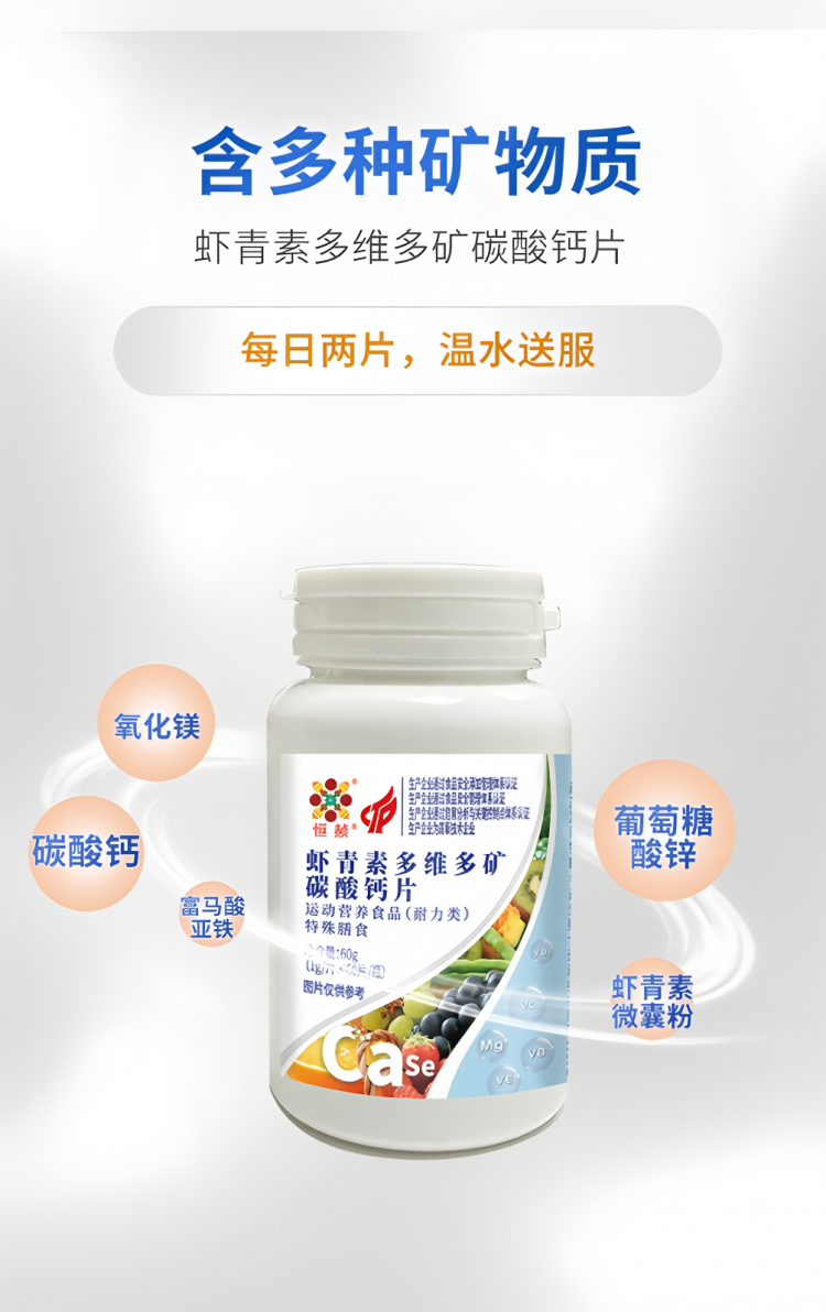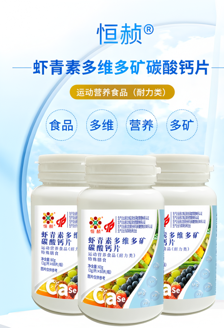 恒赪虾青素多维多矿碳酸钙运动营养食品