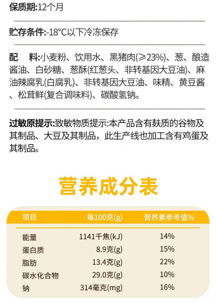 香菇青菜小笼包12只/300g/袋