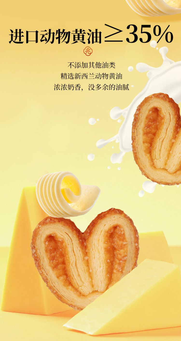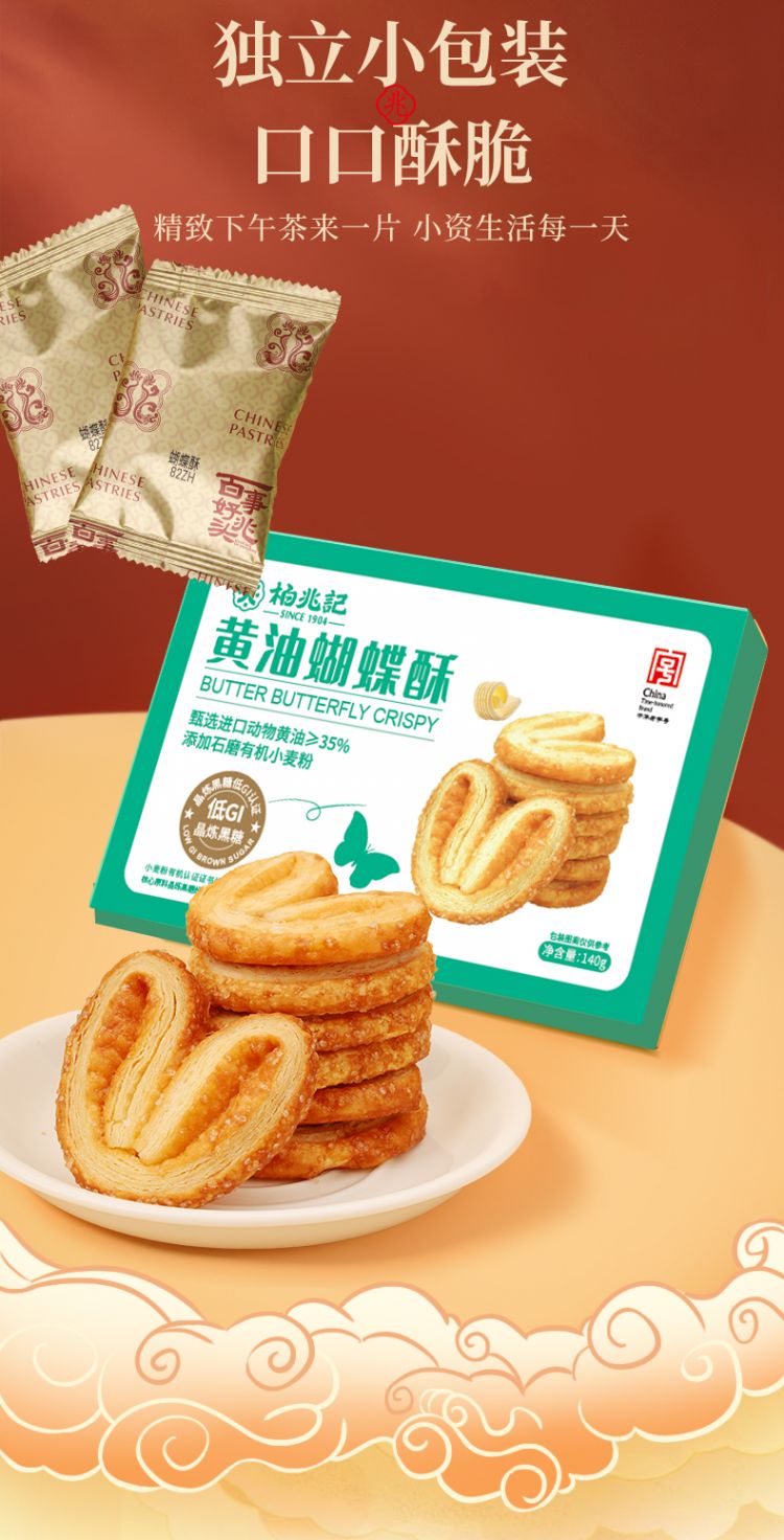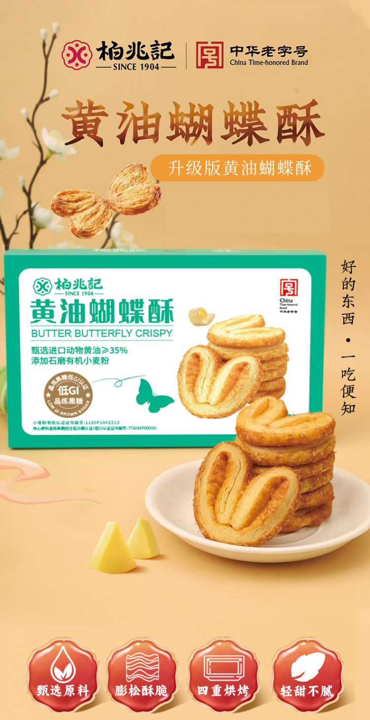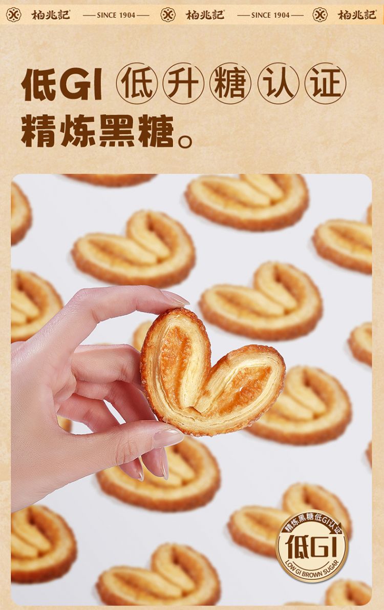 【中华老字号柏兆记黄油蝴蝶酥】膨松酥脆新西兰动物黄油>35% 添加石磨有机小麦粉 低GI晶炼黑糖口感酥脆奶香浓郁 层层酥皮 销量1.6万
