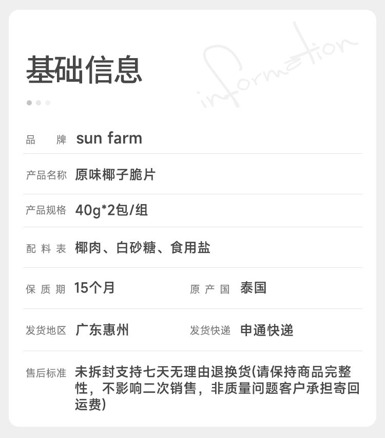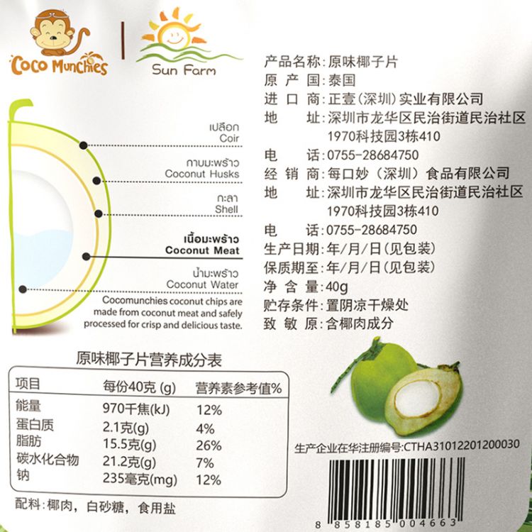 泰国原装进口SunFarm原味椰子片非油炸膨化 原浆浸泡