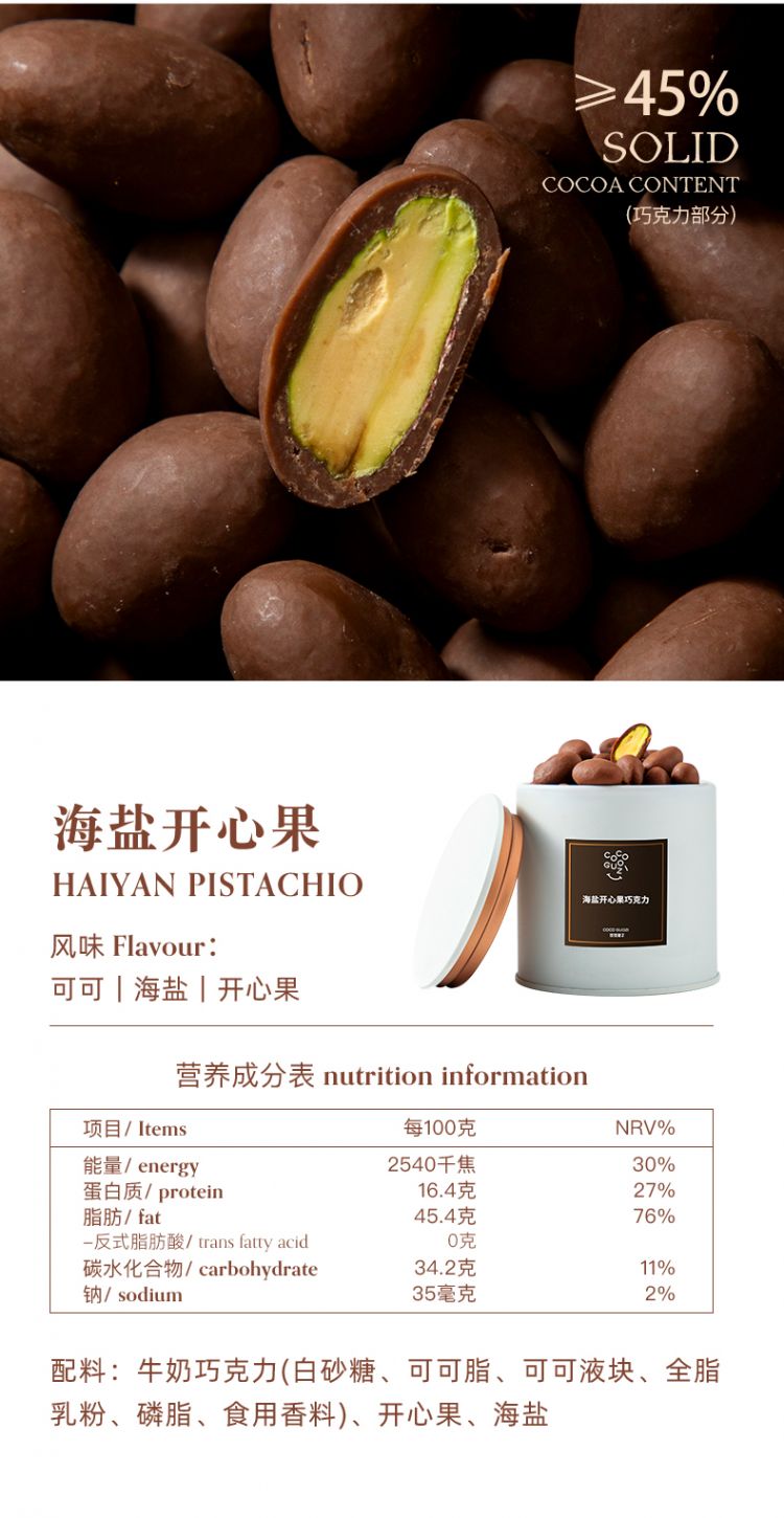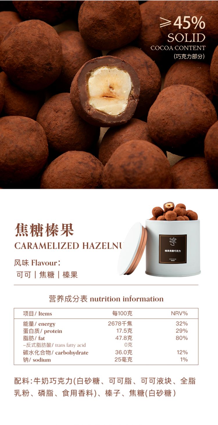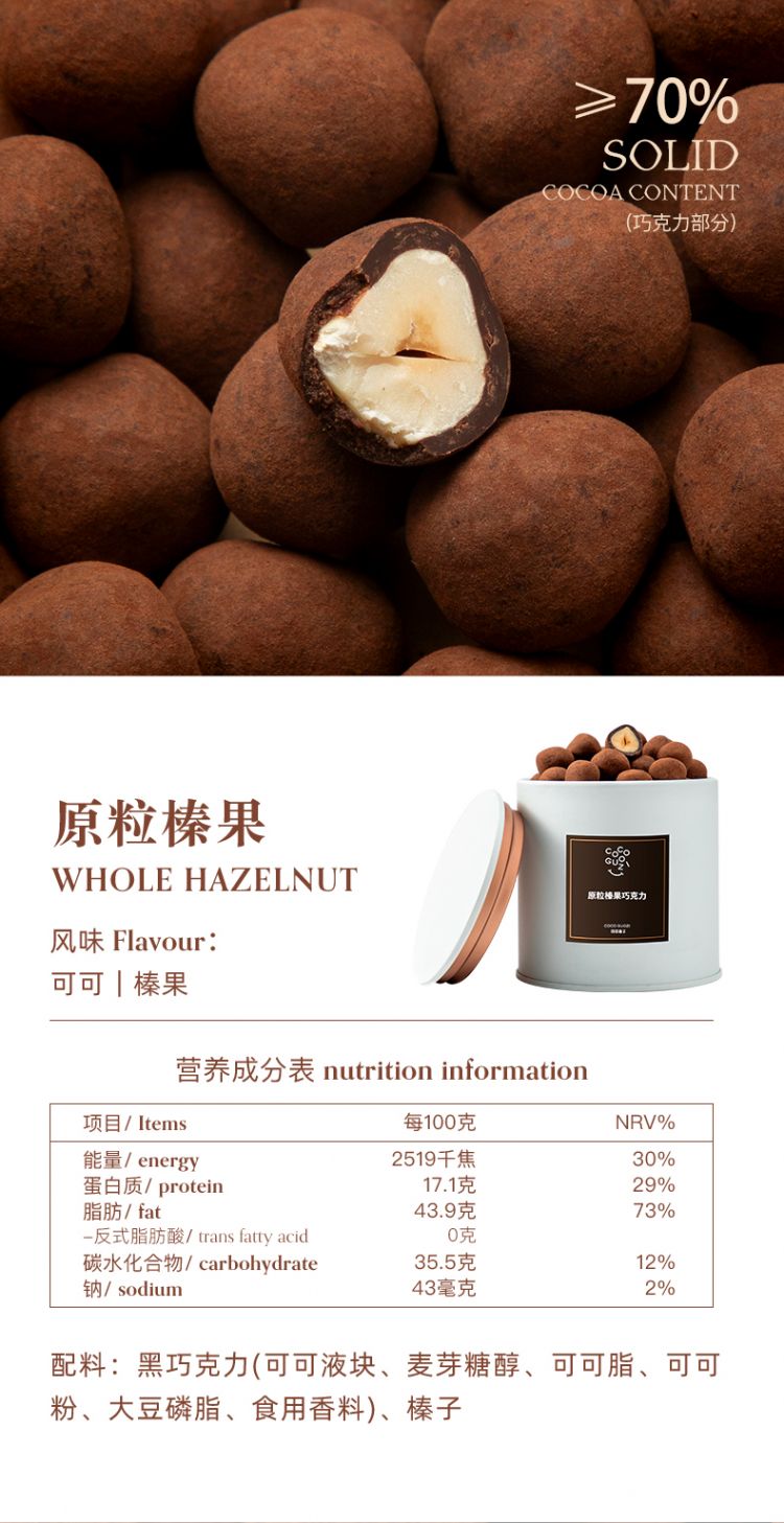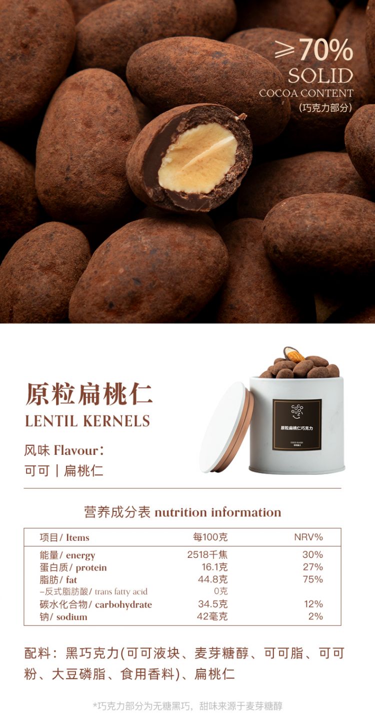 纯可可脂坚果巧克力豆