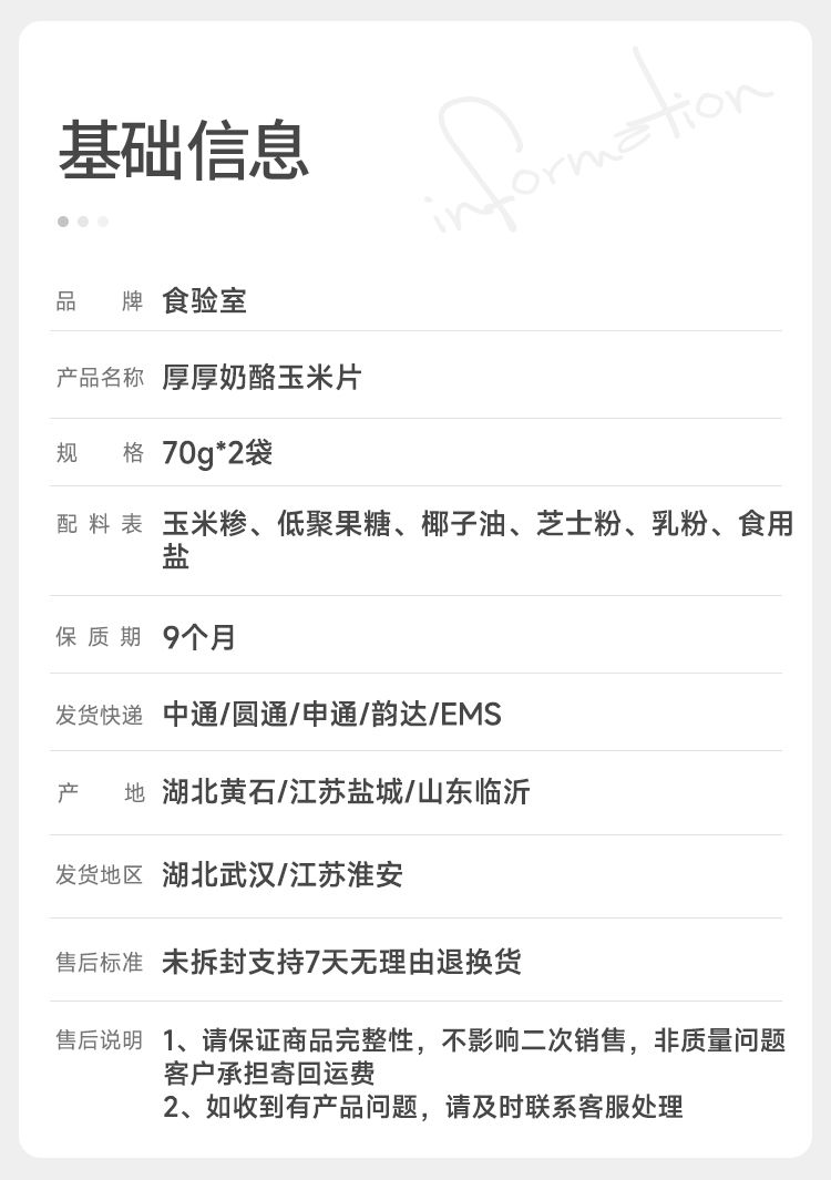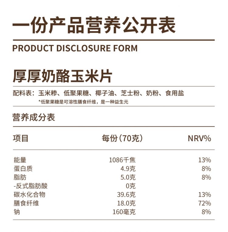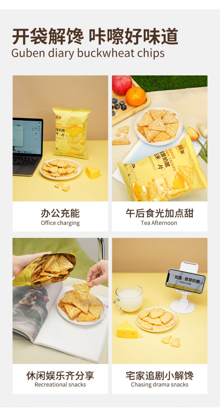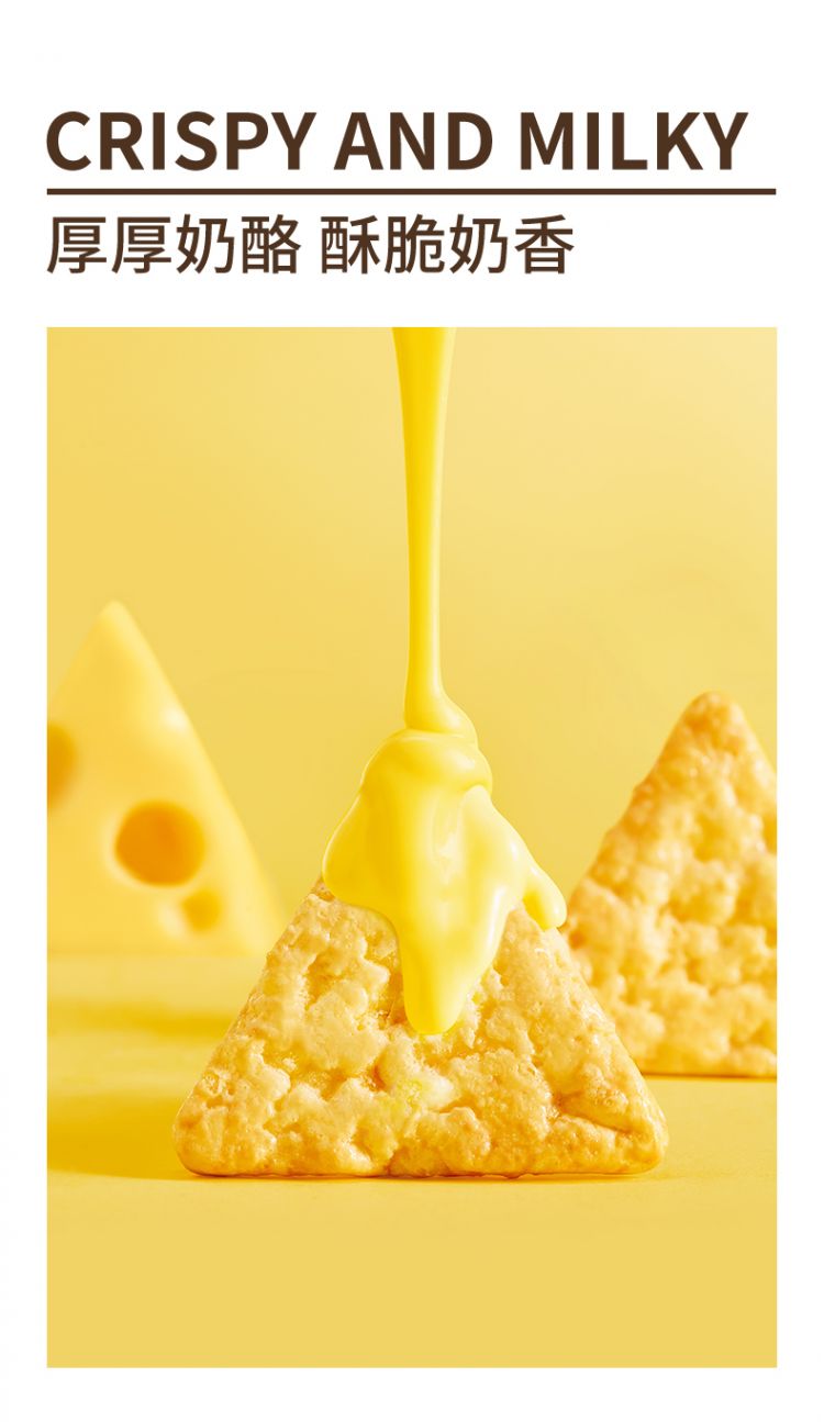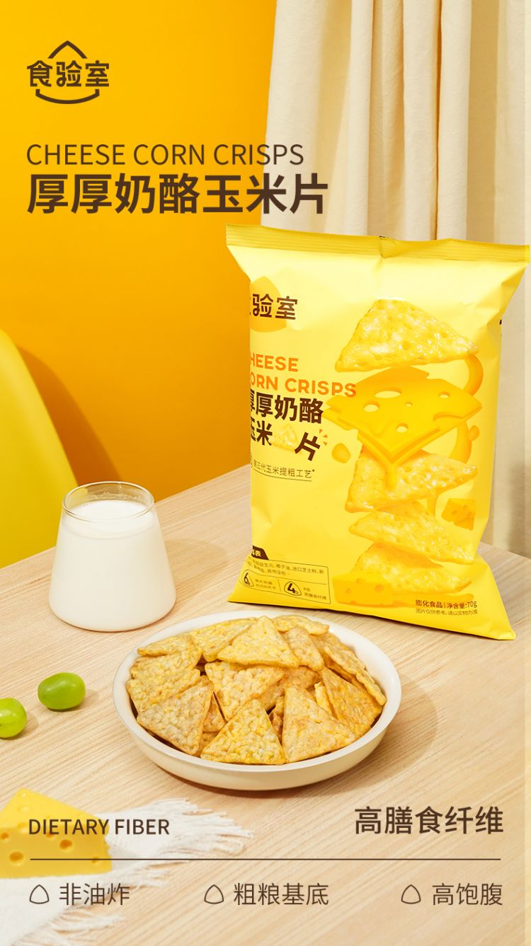 进口奶酪,添加益生元,非油炸,厚实奶酪,咸香酥脆 进口奶酪、奶粉,粗粮基底,膳食纤维含量高达25.7g/100g,非油炸,0反式脂肪酸