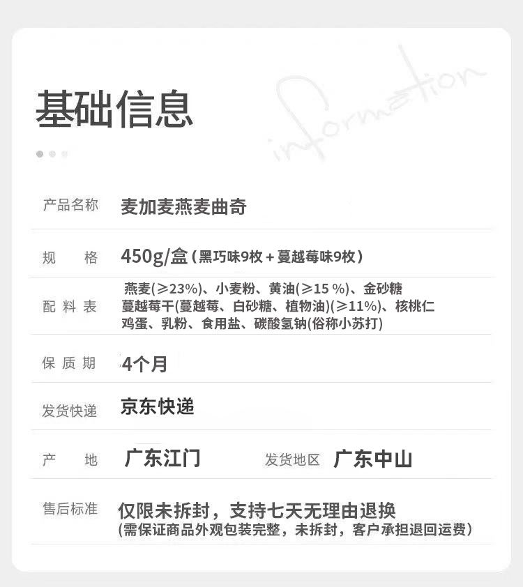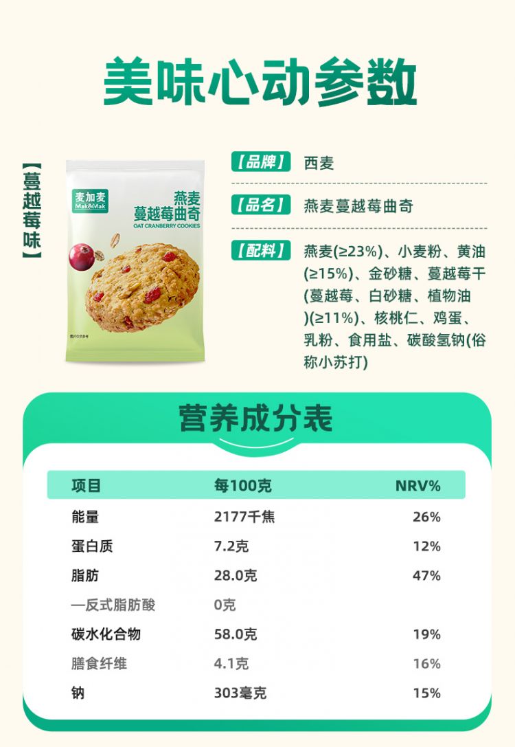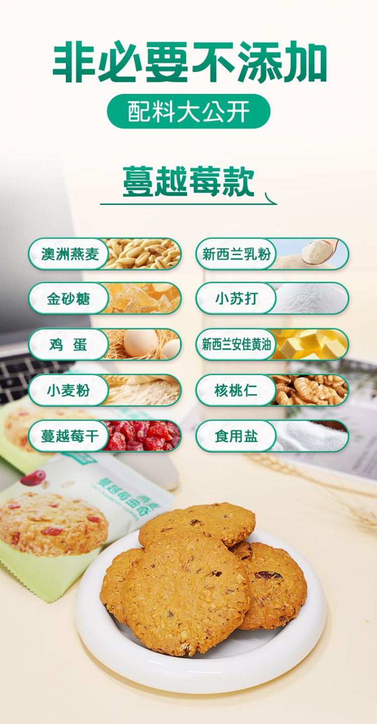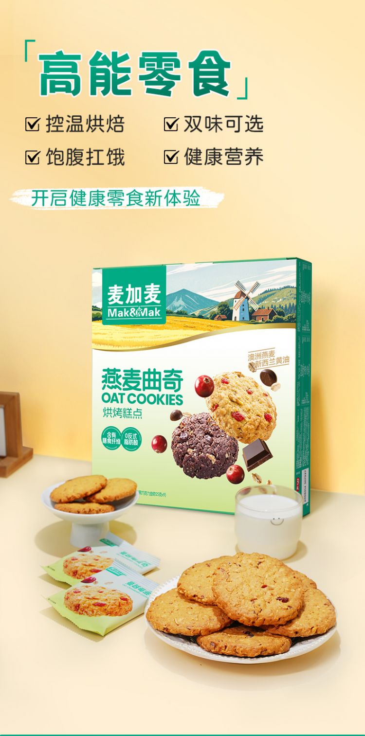 甄选澳大利亚燕麦>23% 新西兰黄油>15%! 酥松香浓 入口即化 健康美味!、0反式脂肪酸 金砂糖代替白砂糖∨饱腹感强