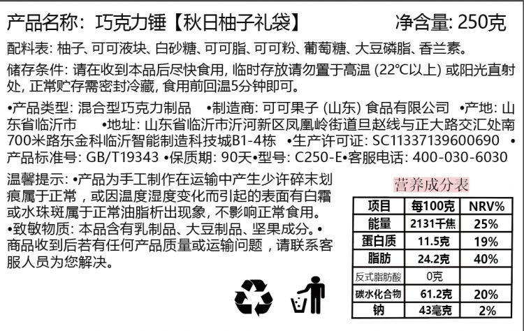 秋韵柚子(柚子黑巧)250g/盒