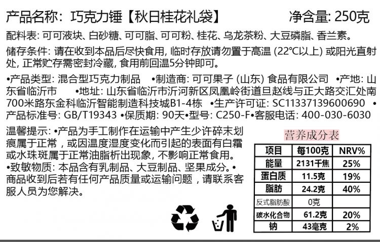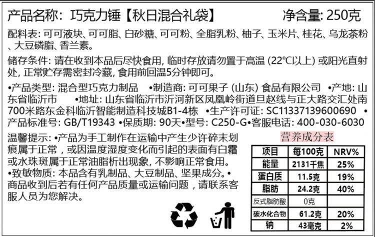 秋日限定纯可可脂手工巧克力锤