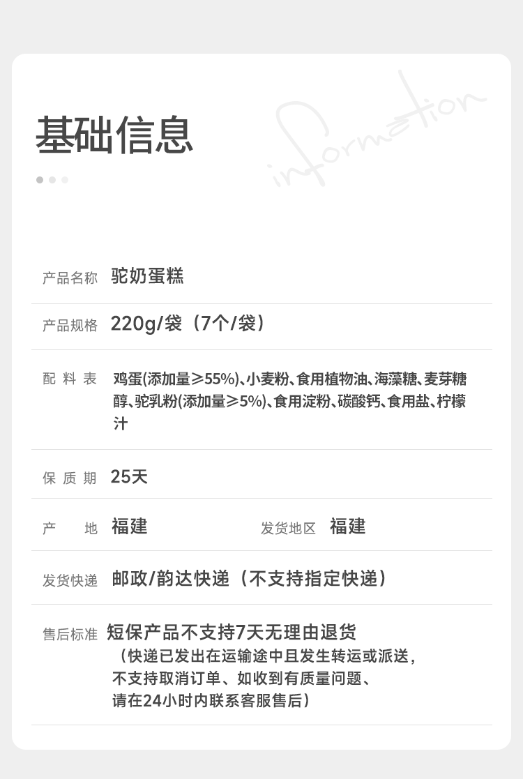 添加5%6驼乳粉 55%6的新鲜鸡蛋含量 钙含量高达275mg/100g达到国家高钙食品标准 现做现发 新鲜短保