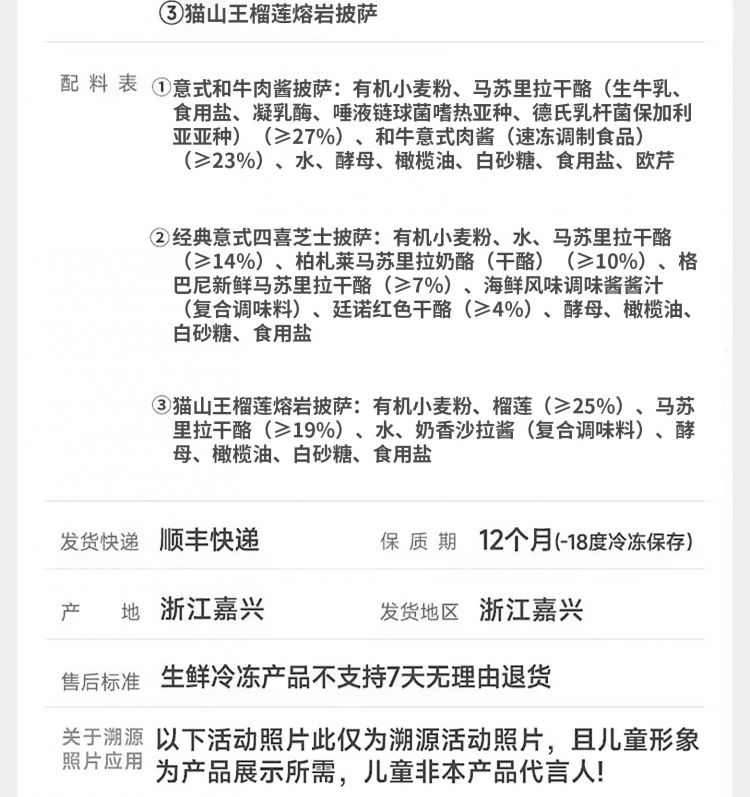 猫山王榴莲熔岩披萨235g*1盒