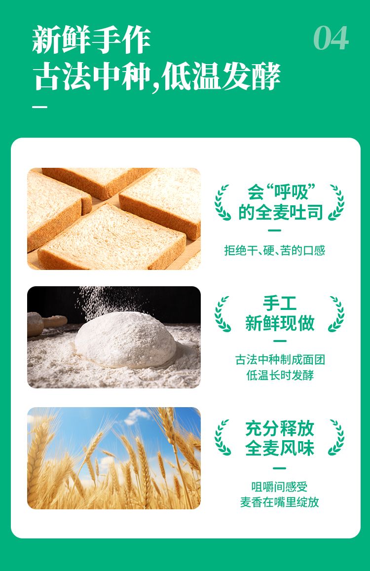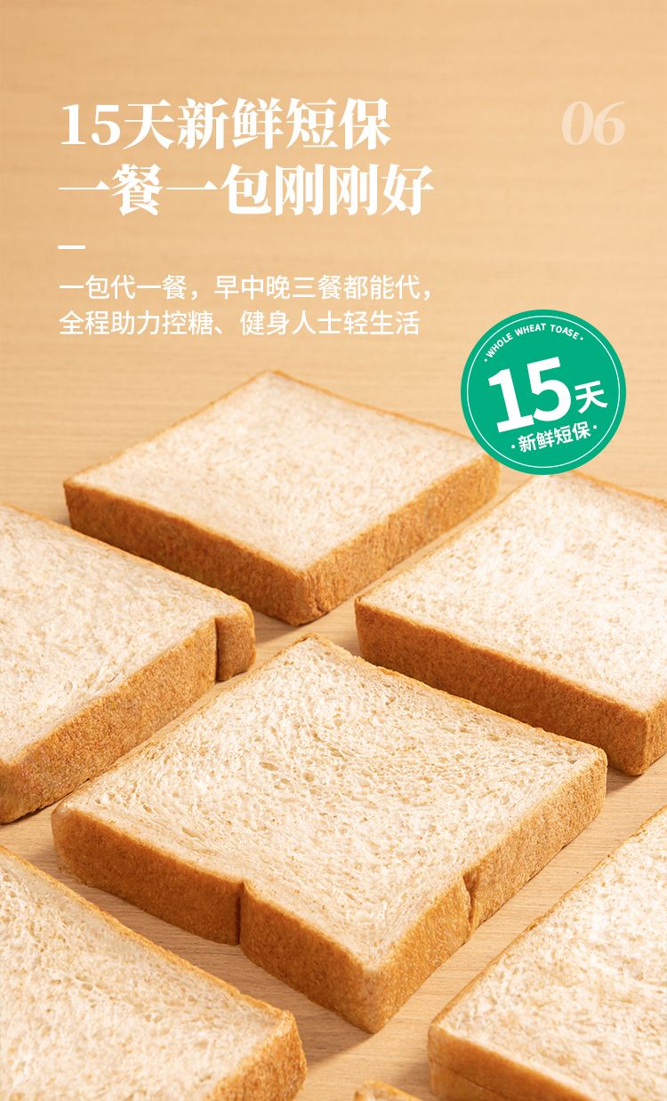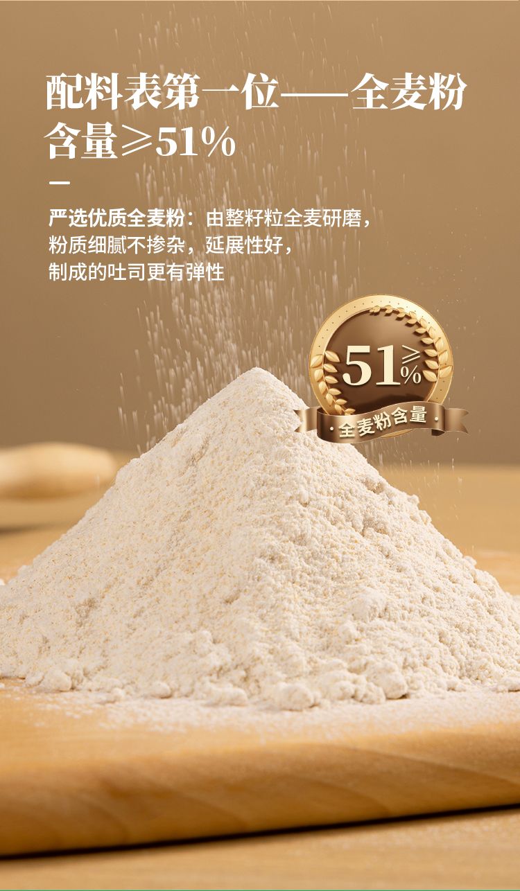 丰富膳食纤维 高饱腹:全麦含景>51% 丰富膳食纤维、高饱腹:全麦含量>51%无蛋无奶 素食吐司
