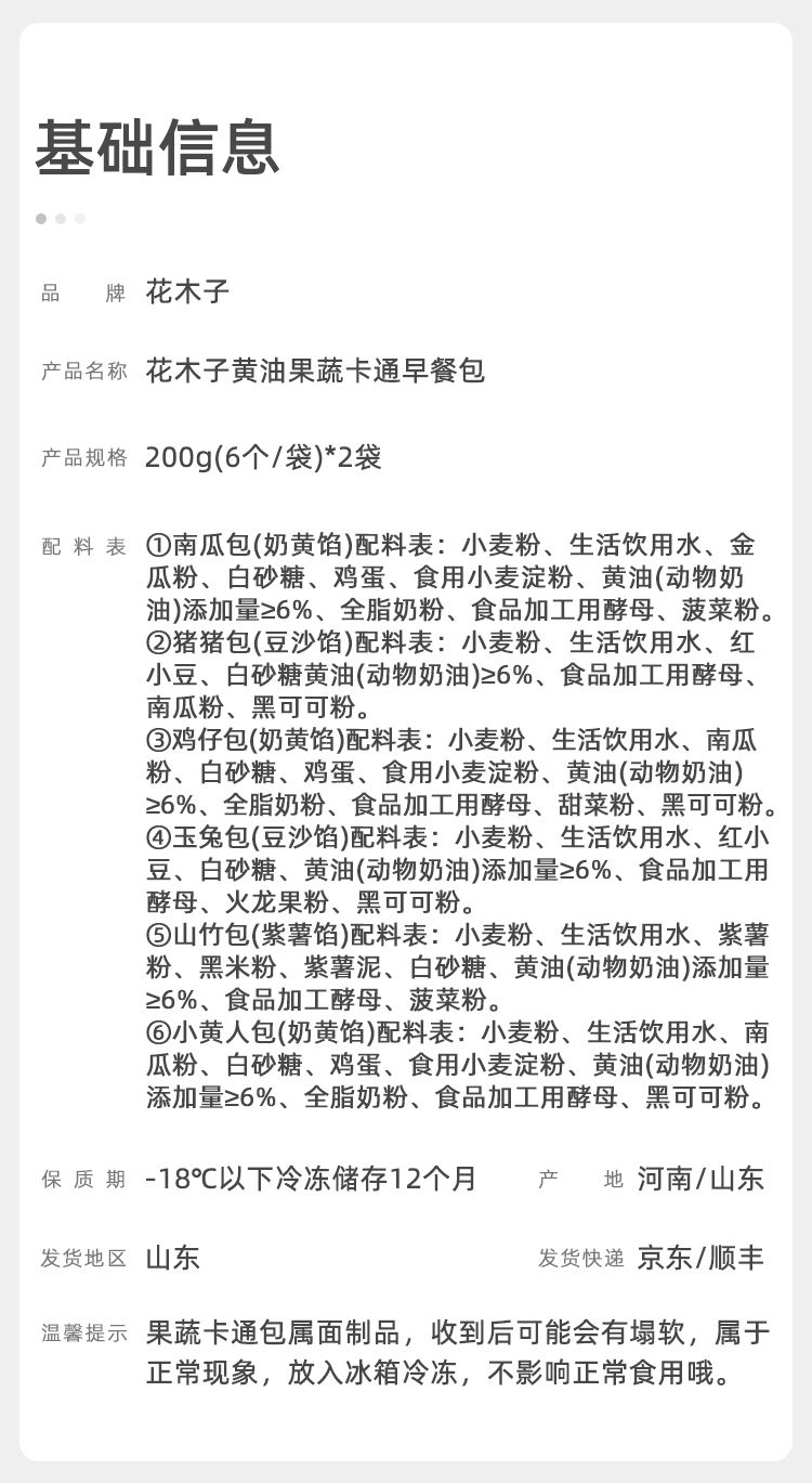 花木子黄油果蔬卡通早餐包