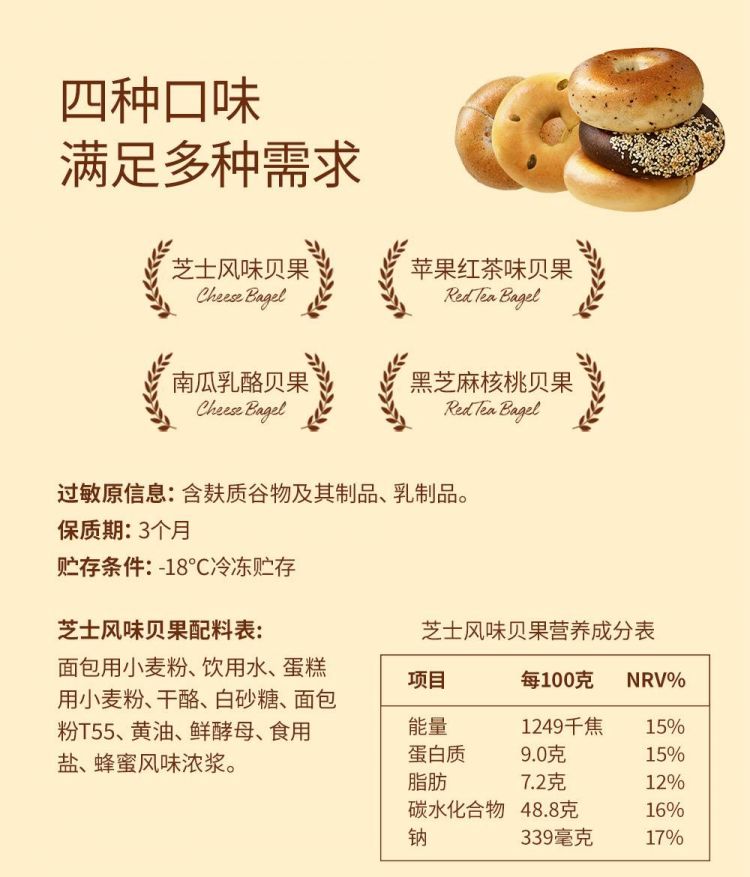 贝果芝士/苹果红茶/南瓜乳酪/黑芝麻核桃多口味