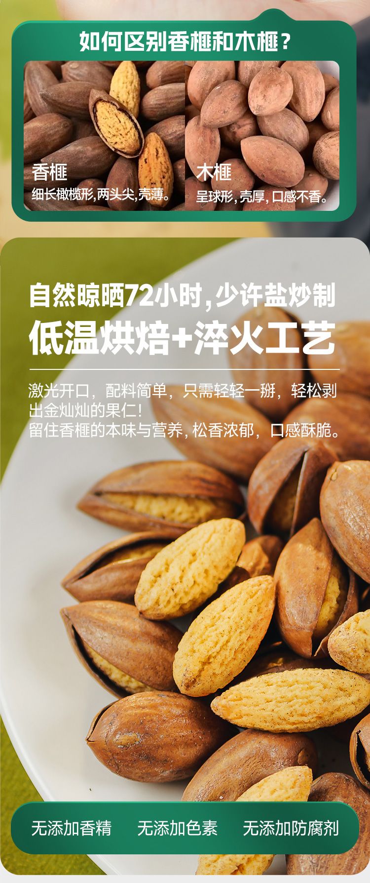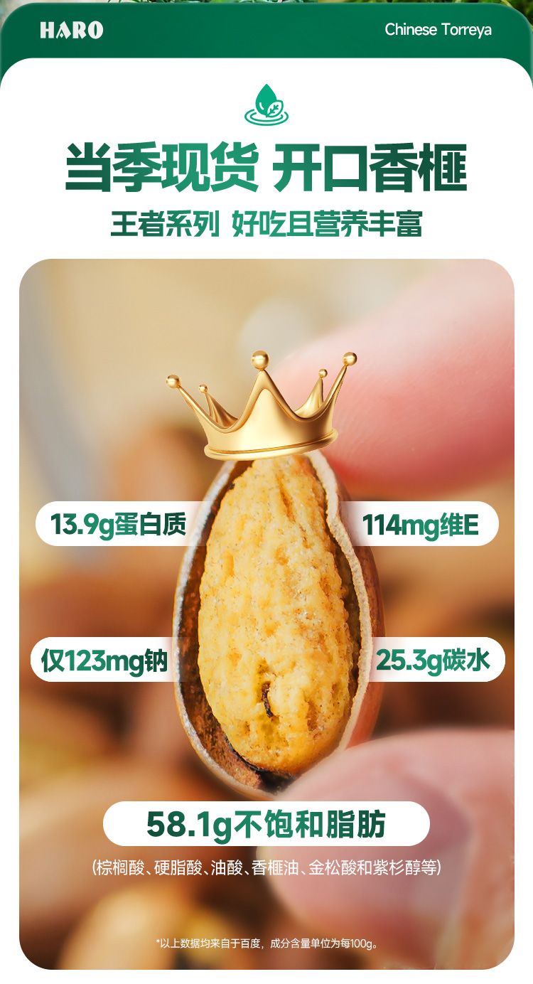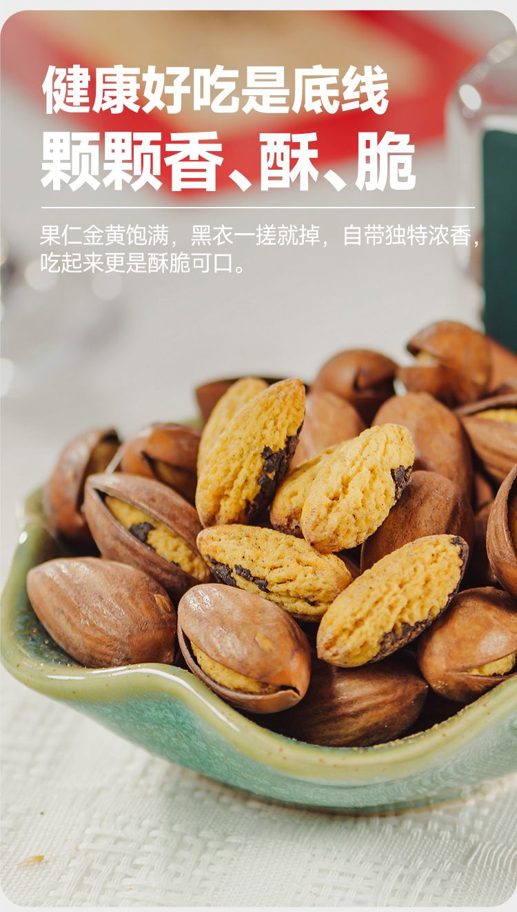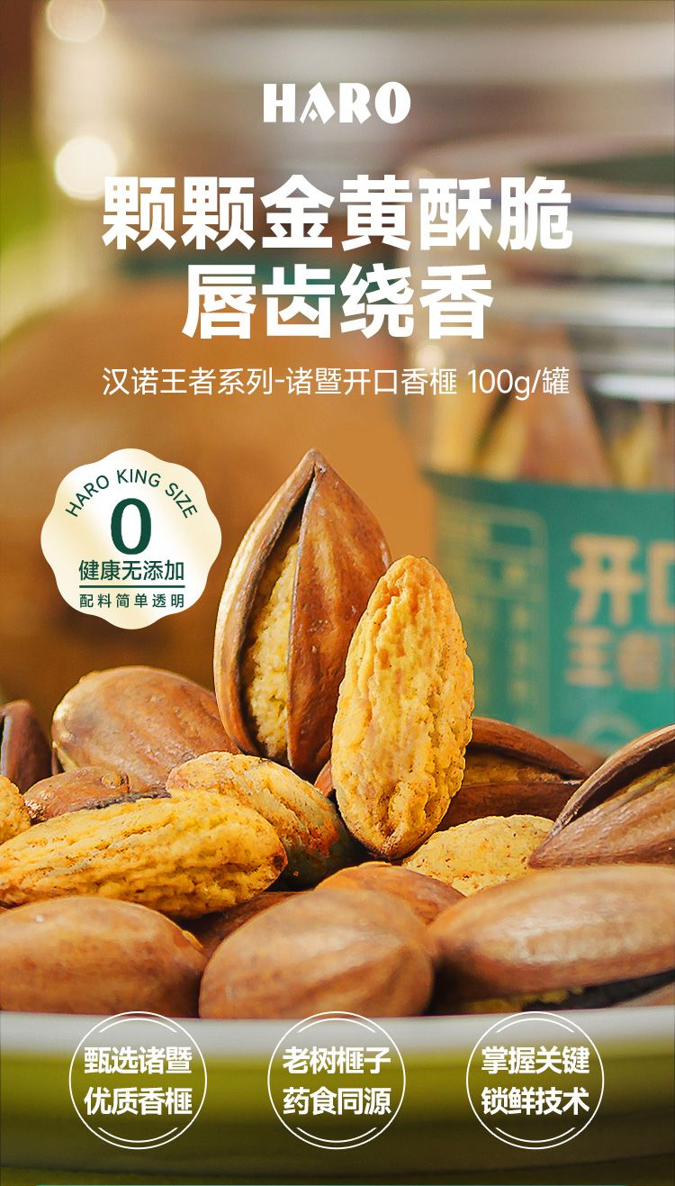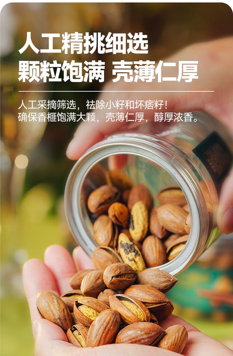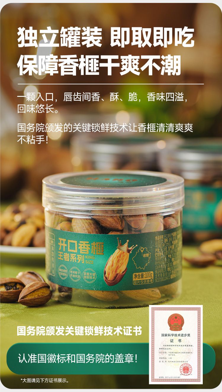 关键锁鲜技术 香榧激光开口 干爽不潮,入口即唇齿间香、酥、脆,香味四溢,回味悠长