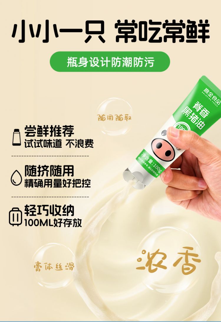 浓厚黑猪油回归儿时香/易携带/一挤即用/全景适配儿儿 销县童拌饭、便携、无腥气