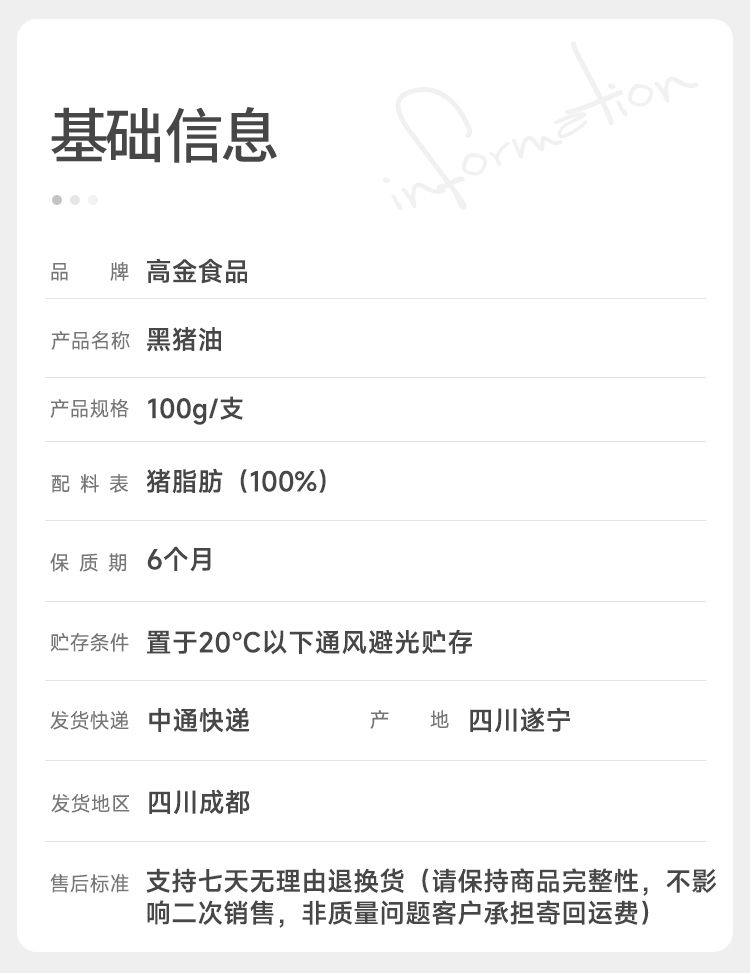MINI黑猪油100g小支便携装