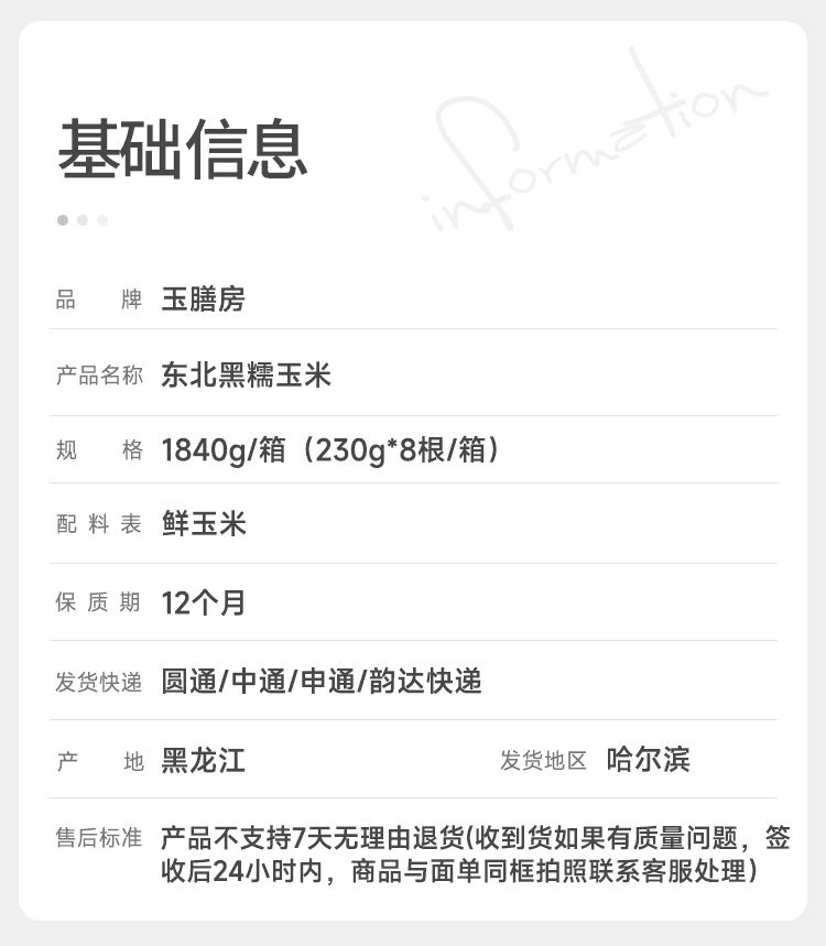 东北黑糯玉米1840g/箱(230g*8根/箱)