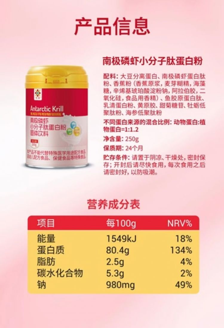 南极磷虾肽,正是这两种肽的完美结合。它既是营养肽,提供全面的氨基酸支持;又是功能肽,帮助对抗疲劳、增强耐缺氧能力、延缓衰老,并显著提升免疫力。长期服用磷虾肽,让你从内而外焕发活力!