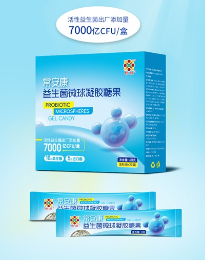 【恒赪常安康益生菌微球凝胶糖果】 五大核心科技:1高过胃率2高保活率3专利菌株4独特后生元5强力定值。开启肠道革命! 1盒等于7千亿活菌空投!活性益生菌出厂添加量7000亿CFU/盒,10种益生菌,5种进口菌 净含量:60克(3克/袋x20瓶),专利三菌王炸!肠炎/便秘/腹泻一键清零! 1盒=肠道翻新,10盒=肠寿无忧!肠稳,才能肠赢!